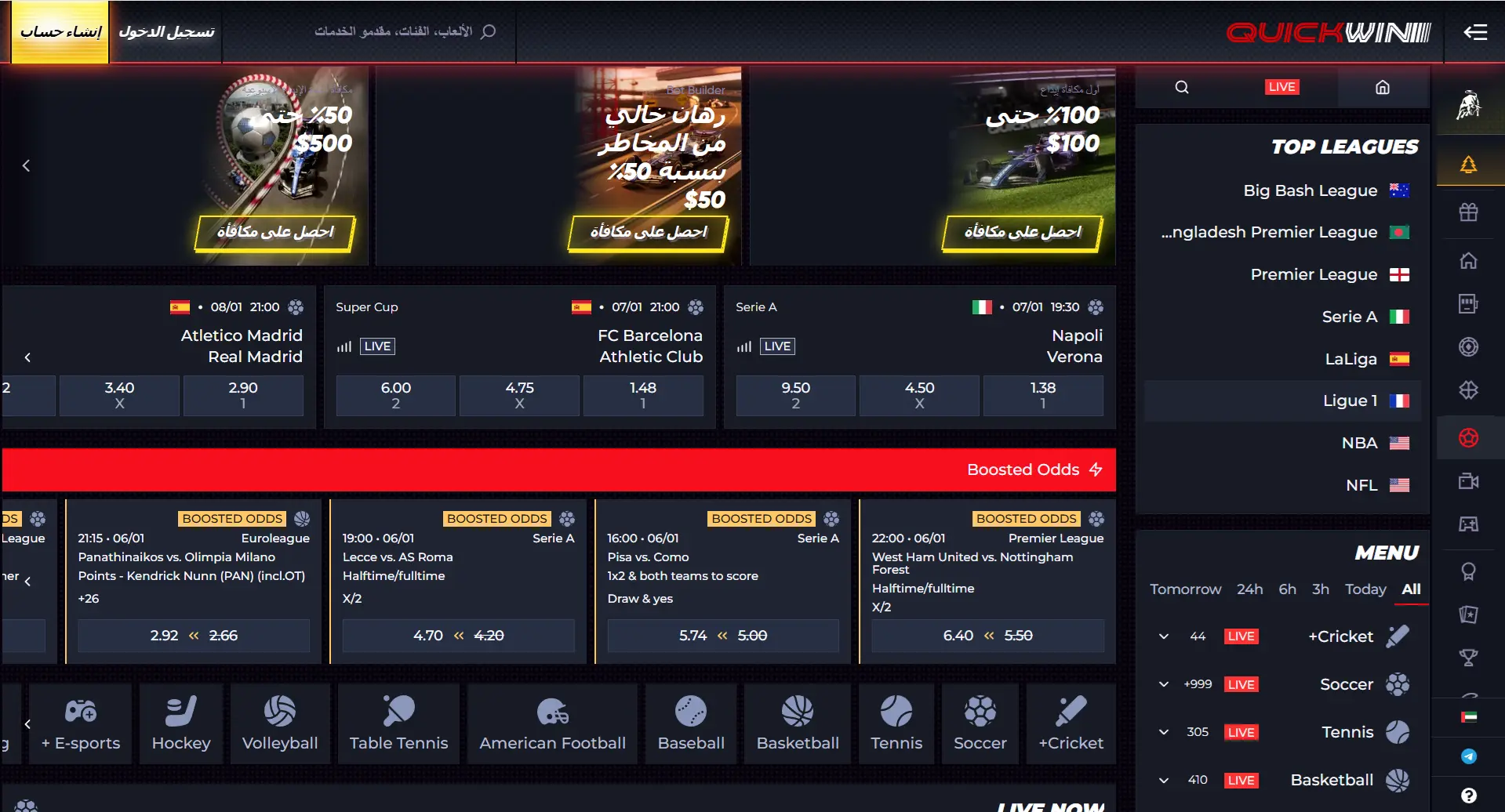 نظرة عامة على المراهنات الرياضية في QuickWin